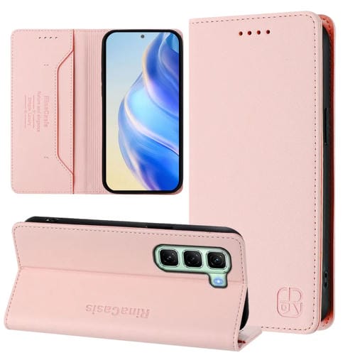 Funda de Cuero con Doble Pliegue y Succión Magnética RFID para Infinix Hot 50 5G Rc01 (Rosa)