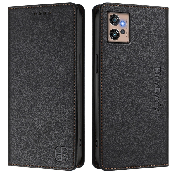 Funda de Cuero con Doble Pliegue y Succión Magnética Rfid para Motorola Moto G32 Rc01 (Negro)
