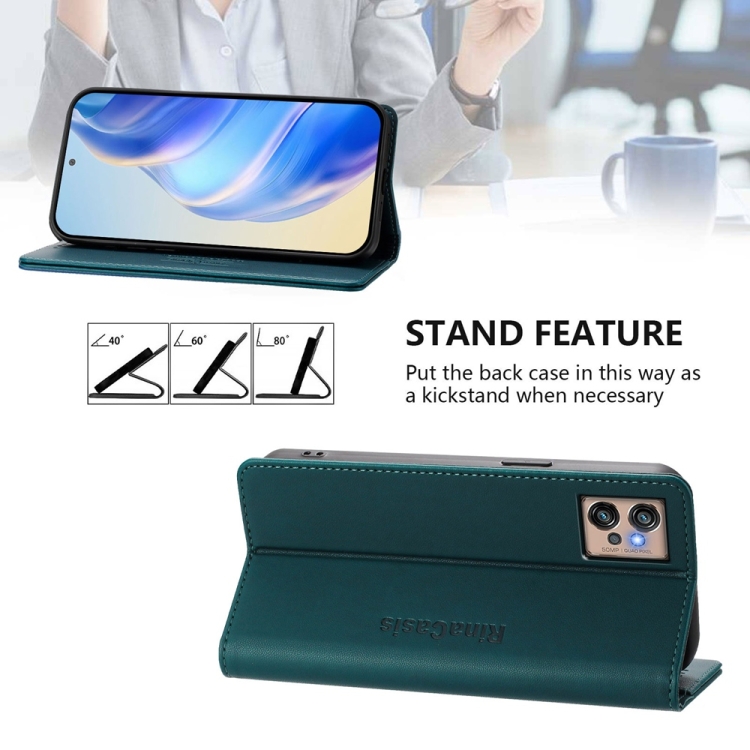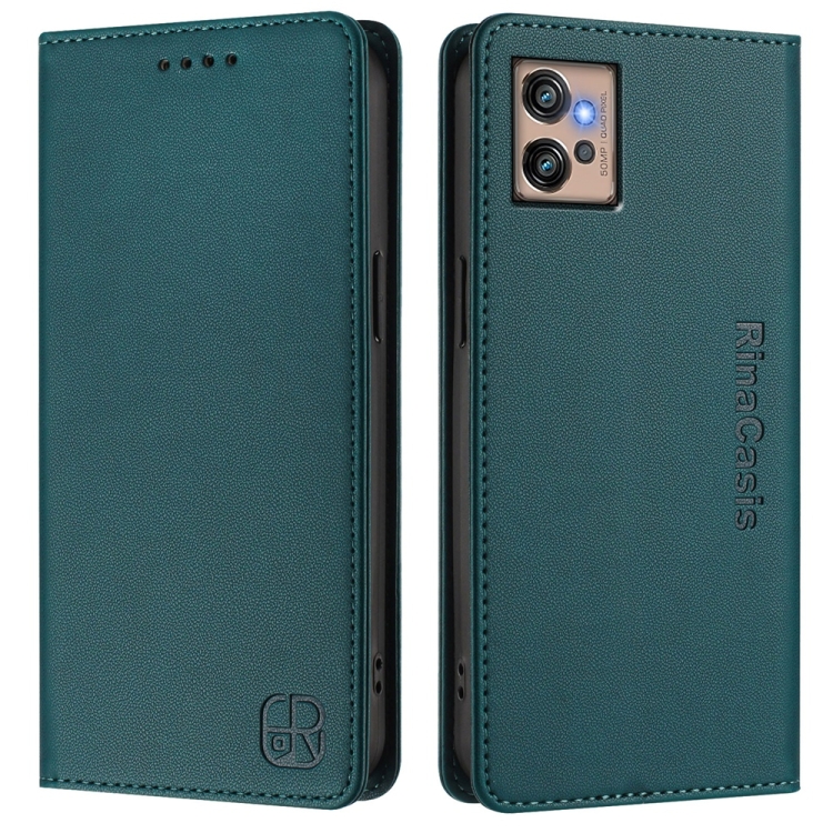 Funda de Cuero con Doble Pliegue y Succión Magnética Rfid para Motorola Moto G32 Rc01 (Verde Oscuro)