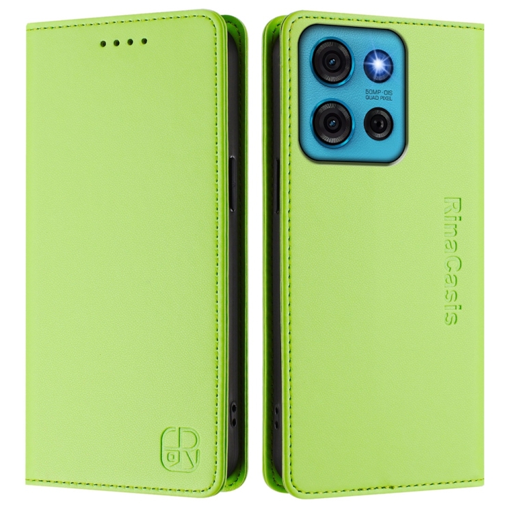 Funda de Cuero Motorola Moto G75 5G Rc01 con Doble Pliegue y Succión Magnética Rfid (Verde Hierba)