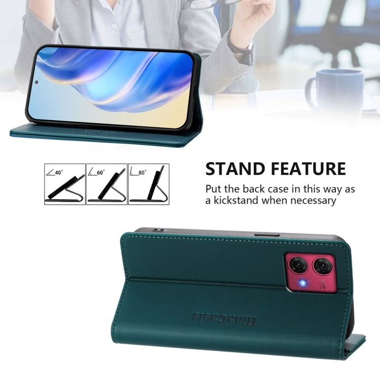 Funda de Cuero con Doble Pliegue y Succión Magnética RFID para Motorola Moto G84 Rc01 (Verde Oscuro)