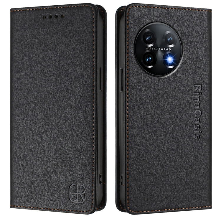 Funda de Cuero para OnePlus 11 Rc01 con Doble Pliegue y Succión Magnética Rfid (Negra)