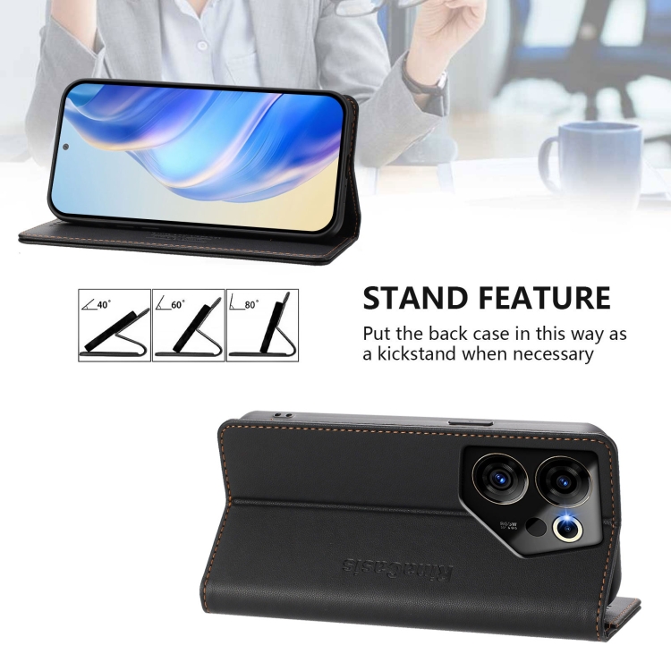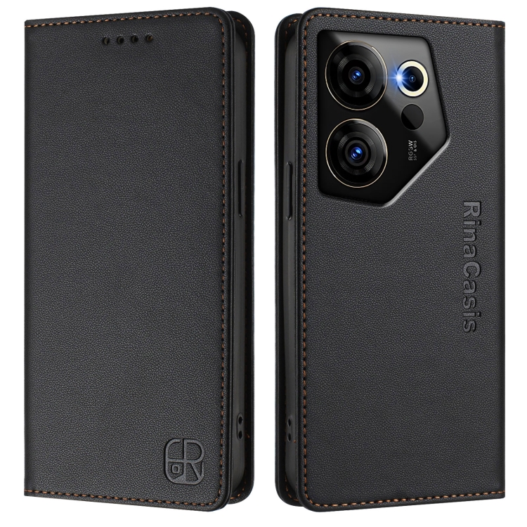 Funda de Cuero con Doble Pliegue y Cierre Magnético RFID para Tecno Camon 20 Premier 5G Rc01 (Negra)