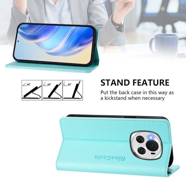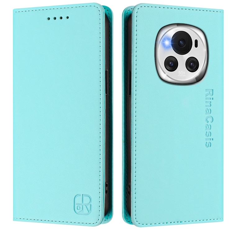 Funda de Cuero Rfid con Doble Pliegue y Succión Magnética para Honor Magic6 Global Rc01 (Verde Menta)