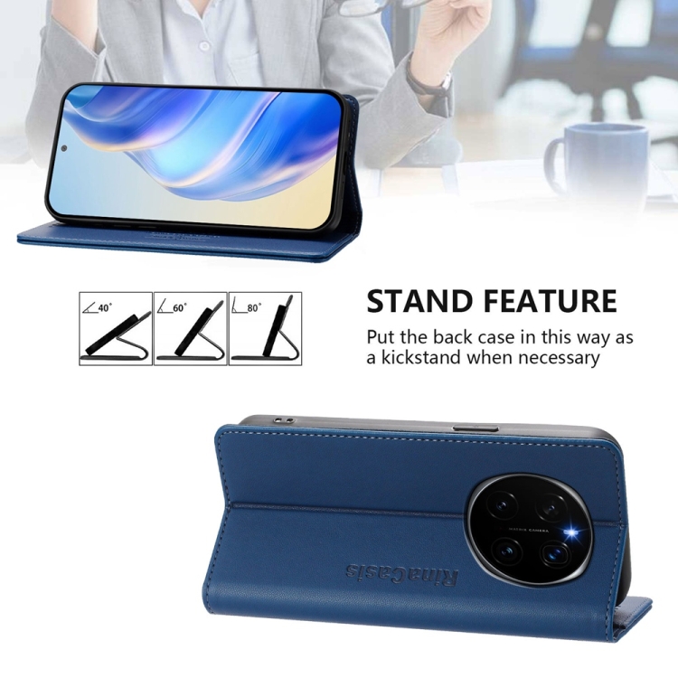 Funda de Cuero Rfid con Doble Pliegue y Succión Magnética para Honor Magic7 Pro Rc01 (Azul Oscuro)