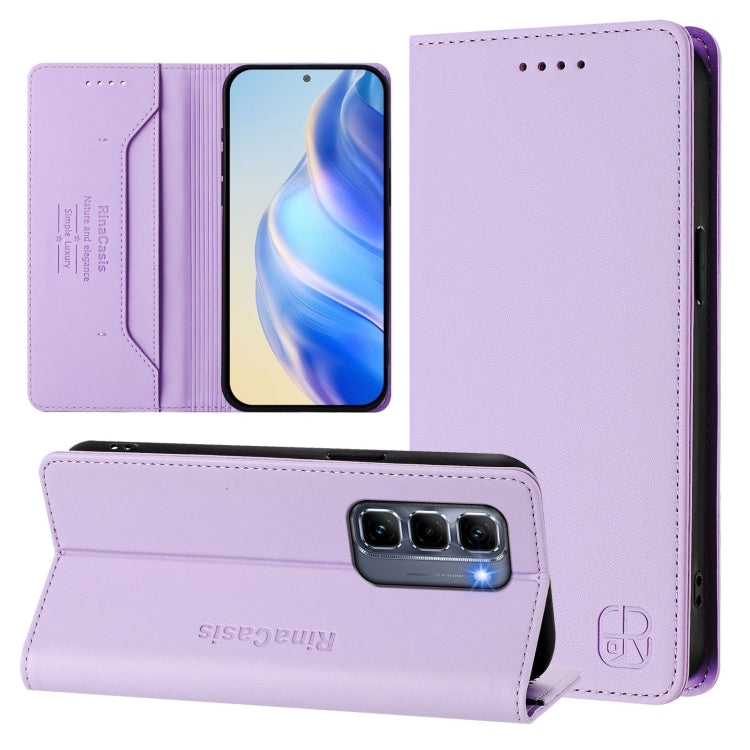 Funda de Cuero con Doble Pliegue y Succión Magnética Rfid para Infinix Hot 50 Pro+ 4G Rc01 (Morado Claro)