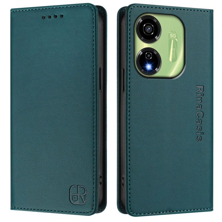 Funda de Cuero Itel P55 5G Rc01 con Doble Pliegue y Succión Magnética Rfid (Verde Oscuro)