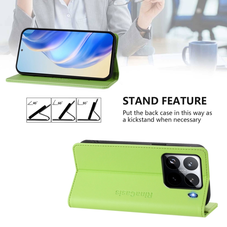 Funda De Cuero Con Doble Pliegue Y Succión Magnética Rfid Para Xiaomi 15 Pro Rc01 (Verde Hierba)