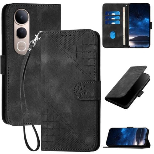 Funda de Cuero con Estampado de Mariposas En Relieve y Cordón para Vivo V50 Lite 4G/5G (Negro)