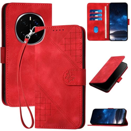 Funda de Cuero con Estampado de Mariposas en Relieve y Cordón para Honor Magic7 (Rojo)