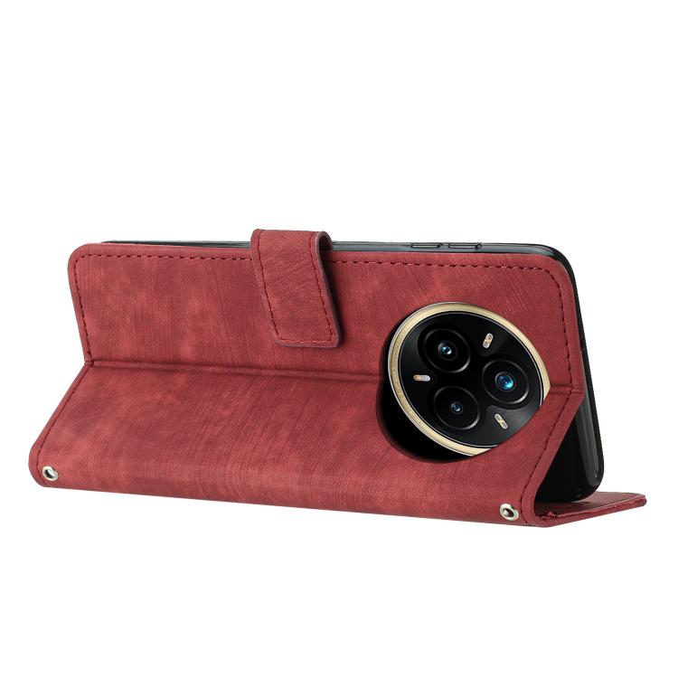 Funda de Cuero con Estampado de Rayas y Cordón para Realme 14 Pro+ (Roja)