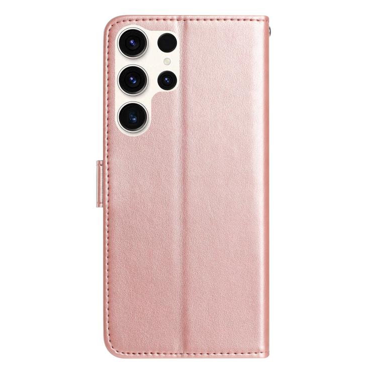 Funda de cuero con estampado floral en relieve para Samsung Galaxy S24 Ultra 5G (oro rosa)