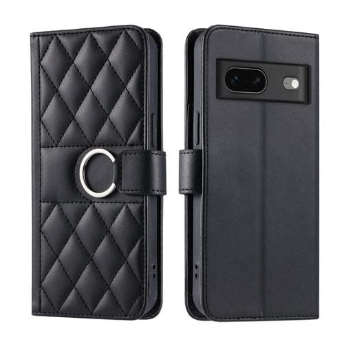 Funda de Cuero con Forma de Rombo y Hebilla de Anillo para Google Pixel 7 (Negra)