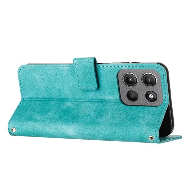 Funda de Cuero Triangular para Motorola Moto G15 Dream con Cordón (Verde)