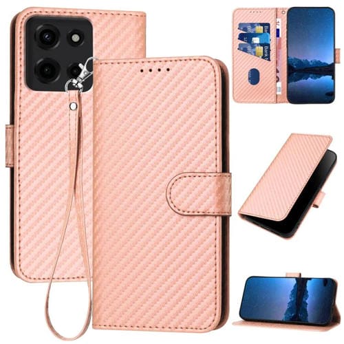 Funda de Cuero con Hebilla de Fibra de Carbono para Motorola Moto G 2025 Yx0070 con Cordón (Rosa)