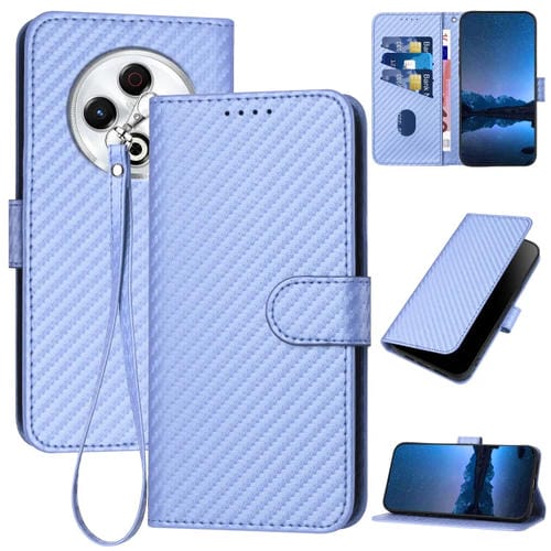 Funda de Cuero con Hebilla de Fibra de Carbono para Tecno Spark 30 4G Yx0070 con Cordón (Morado Claro)