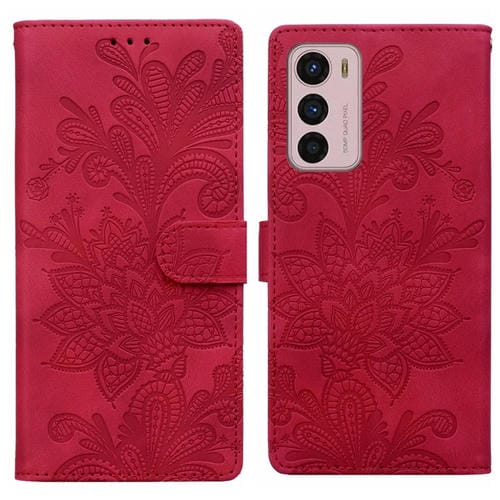 Funda de Cuero con Hebilla Magnética y Diseño Floral para Motorola Moto G42 (Rojo)
