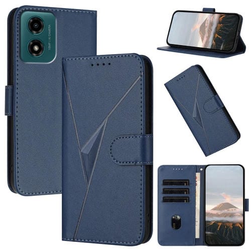 Funda de Cuero con Hebilla y Diseño de Triángulos para Motorola Moto G04 (Azul Real)