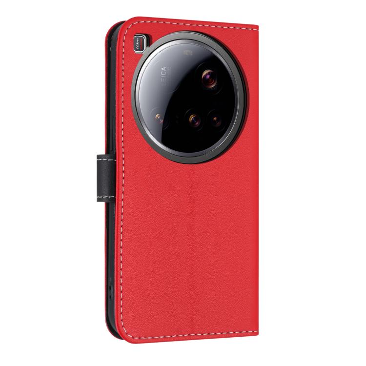 Funda de cuero con lazo metálico y correa de mano para Xiaomi 15 Ultra (roja)