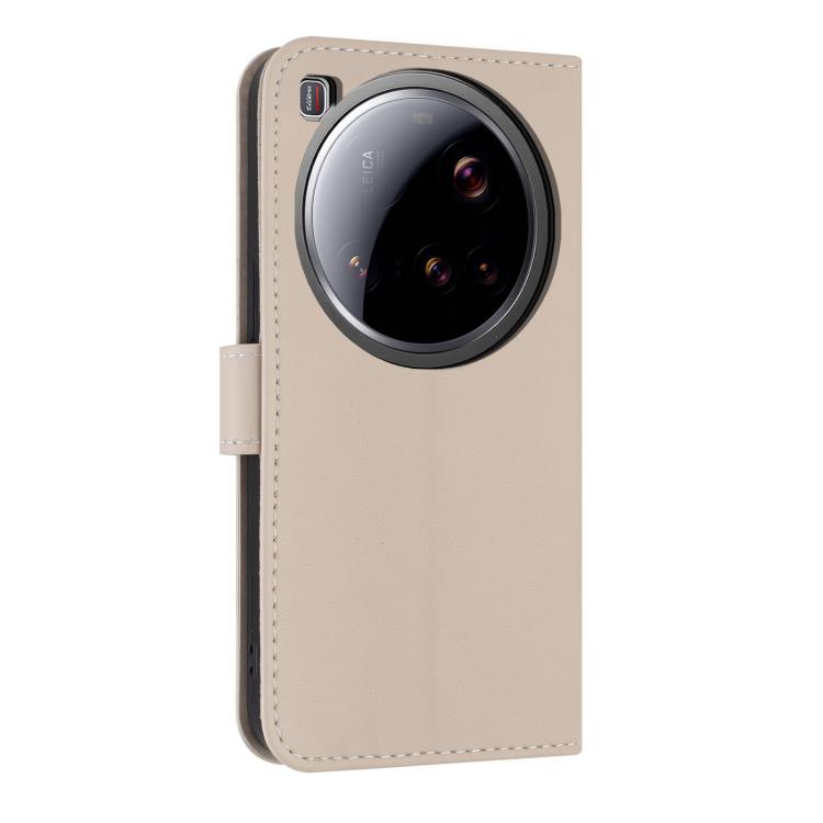 Funda de cuero con lazo metálico y correa para la mano para Xiaomi 15 Ultra (albaricoque)