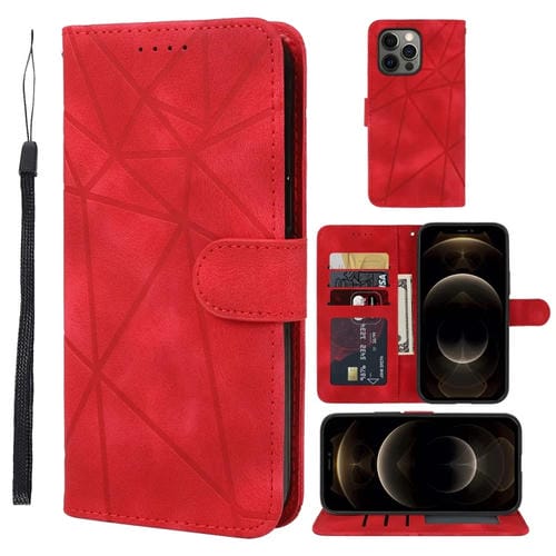 Étui en cuir à lignes géométriques soyeuses au toucher pour iPhone 12 Pro Max (rouge)
