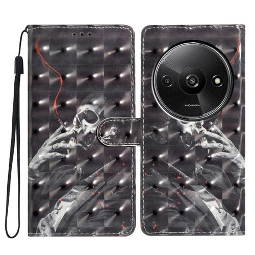 Funda de Cuero con Patrón 3D para Redmi A3 (Calavera)