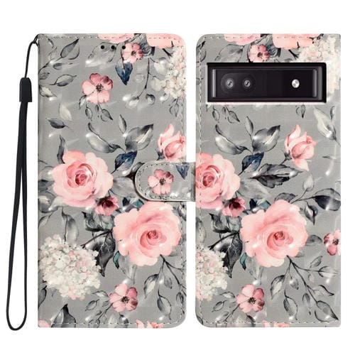 Funda de Cuero con Patrón 3D para Google Pixel 9A (Flor de Base Gris)