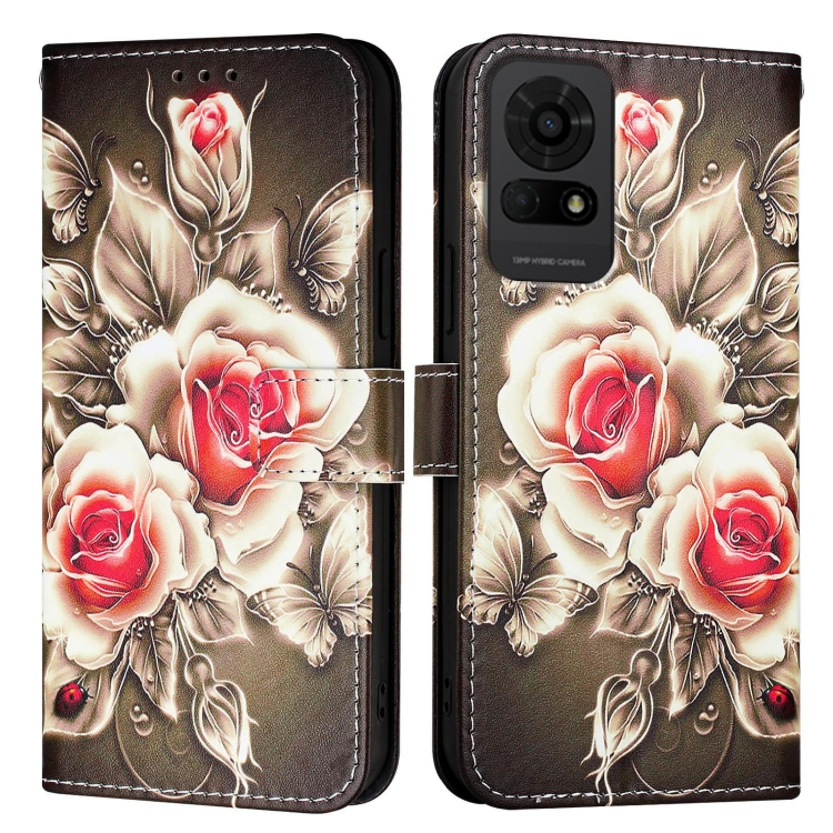 Funda de Cuero para TCL 50 Le 5G con Patrón de Dibujo en Color Liso (Rosas Sobre Negro)