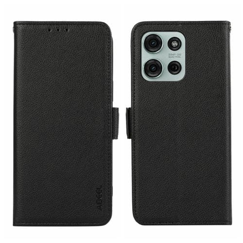 Funda de Cuero con Patrón de Lichi y Cierre Magnético para Motorola Moto G75 5G Abeel (Negro)