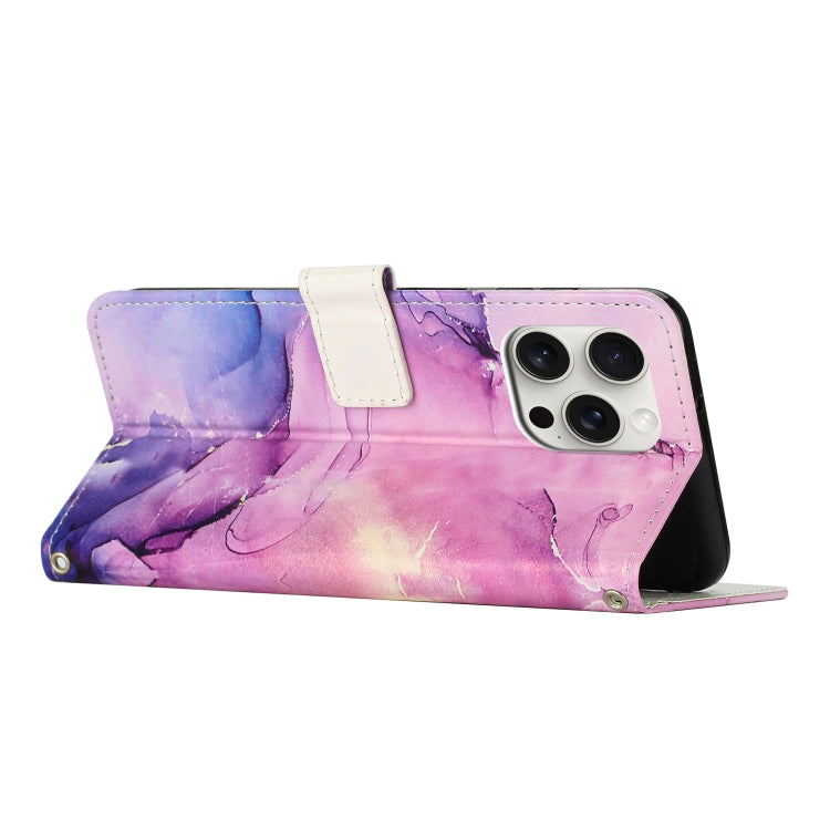Funda de Cuero para iPhone 16 Pro Max con Patrón de Mármol Pintado (Morado)