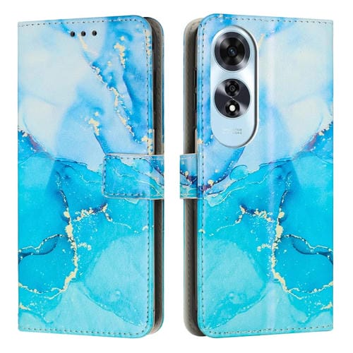 Funda de Cuero con Patrón de Mármol Pintado para Teléfono Oppo A60 4G Global (Azul Verde)