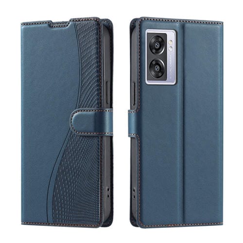 Funda de Cuero con Puntos Ultradelgada para Teléfono Oppo A77 5G/A57E 4G con Voltaje Global (Azul)