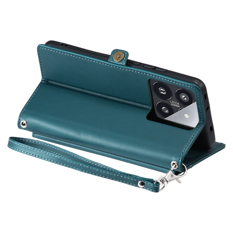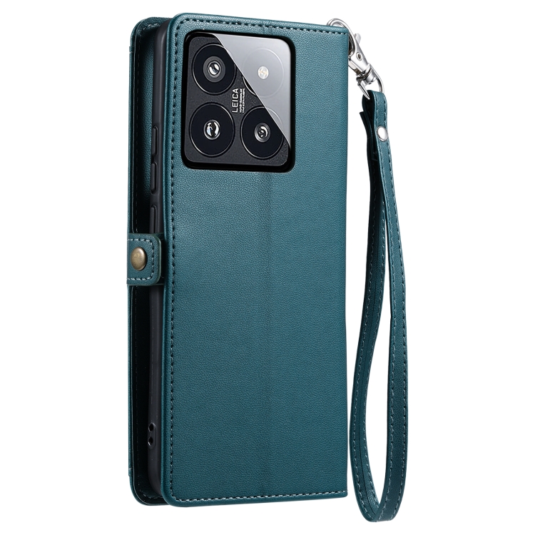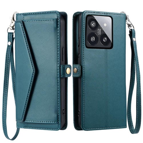 Funda De Cuero Con Ranura Para Múltiples Tarjetas Y Cordón Para Xiaomi 14 Pro (Verde)