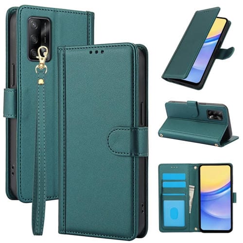 Étui en cuir avec fentes pour cartes de conception en cuir PU de couleur pure pour OPPO A74 4G/A95 4G ​​avec double lanière (vert)