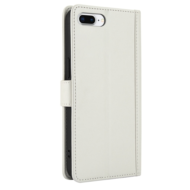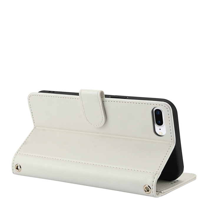 Funda de Cuero para iPhone 7 Plus/8 Plus con Ranuras para Tarjetas y Doble Cordón (Blanco)