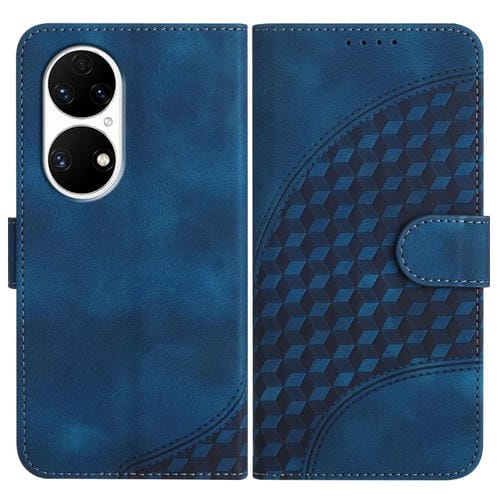 Funda de Cuero con Relieve Cabeza de Elefante para Huawei P50 con Cordón (Azul Real)