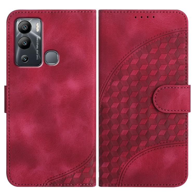 Funda de Cuero con Relieve de Cabeza de Elefante para Infinix Hot 12I con Cordón (Rojo Rosa)