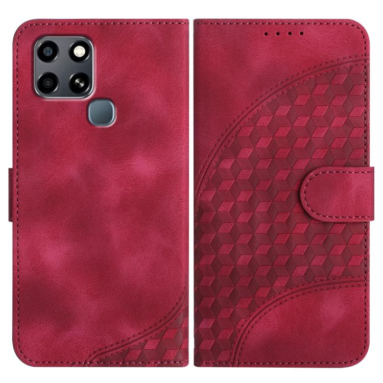 Funda de Cuero con Relieve de Cabeza de Elefante para Infinix Smart 6 y Smart 6 HD con Cordón (Rosa Rojo)