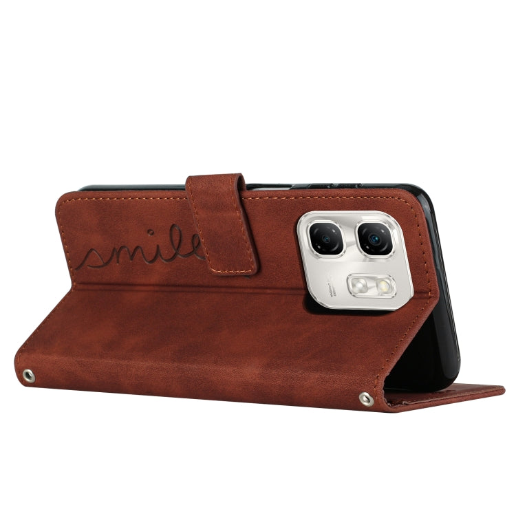 Funda de Cuero con Relieve de Corazón y Cordón Largo para Infinix Hot 50I (Marrón)