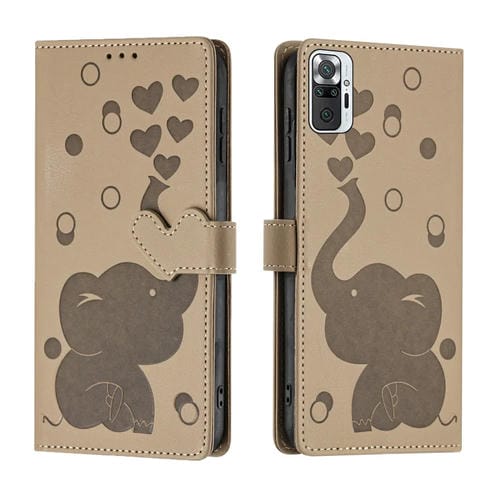 Funda de Cuero con Relieve de Elefante de Dibujos Animados para Redmi Note 10 Pro (Caqui)