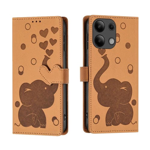 Funda de Cuero con Relieve de Elefante de Dibujos Animados para Redmi Note 13 4G (Amarillo)