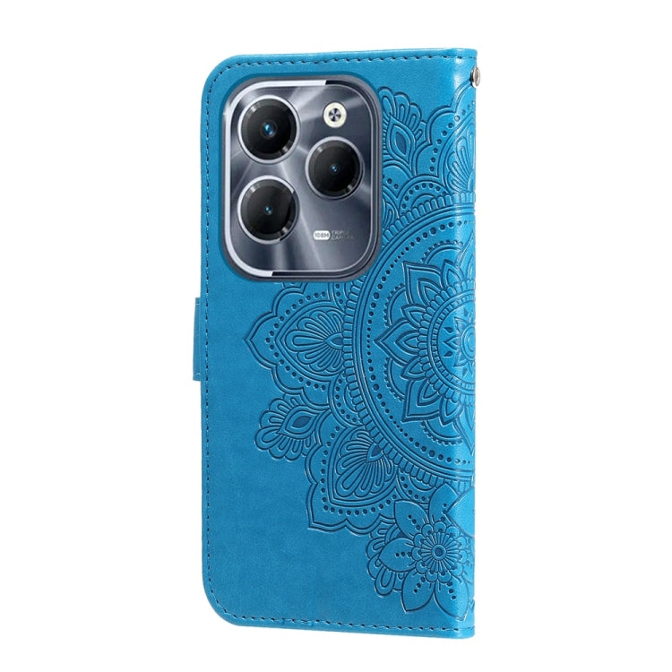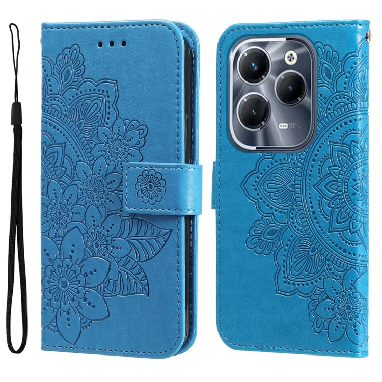 Funda de Cuero con Relieve Flores de Siete Pétalos para Infinix Hot 40 y Hot 40 Pro (Azul)