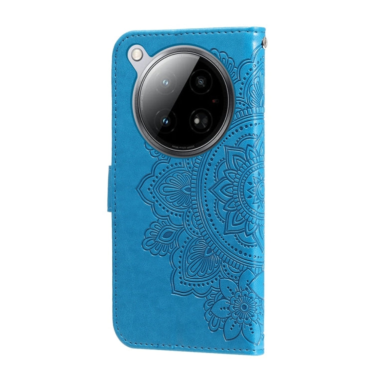 Funda de Cuero con Relieve Flores Siete Pétalos para Infinix Zero 40 4G/5G (Azul)