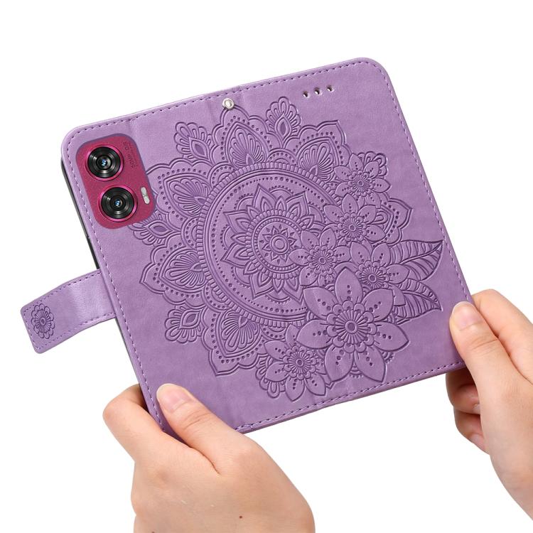 Funda de Cuero con Relieve Flores Siete Pétalos para Motorola Edge 50 Fusion (Morado Claro)