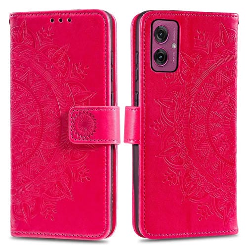 Funda de Cuero con Relieve de Flores para Motorola Moto G55 con Cordón (Rojo)