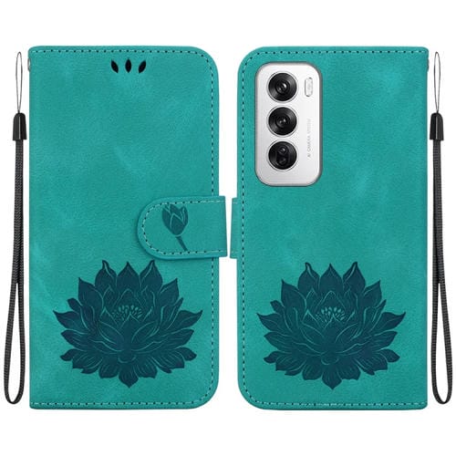 Funda de Cuero con Relieve de Loto para Oppo Reno12 5G Global (Verde)