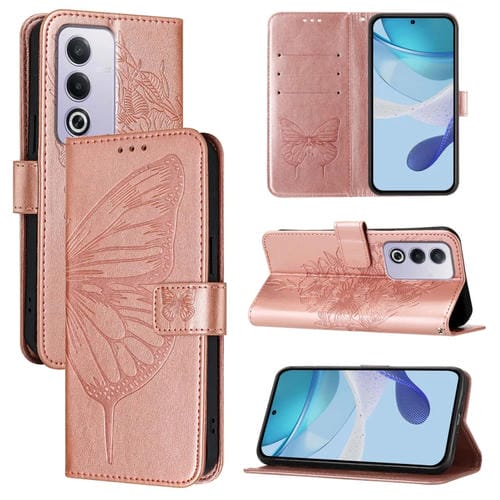 Funda de Cuero con Relieve de Mariposa para Teléfono Oppo A3 Pro 5G (Oro Rosa)