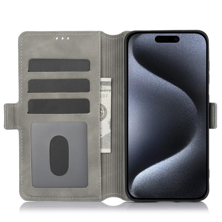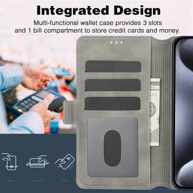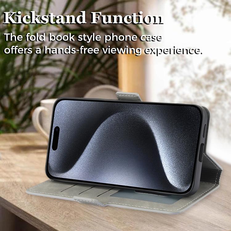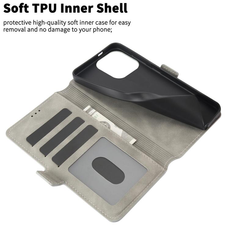 Funda de Cuero iPhone 14 con Relieve de Mariposa y Flor de Amor (Gris)
