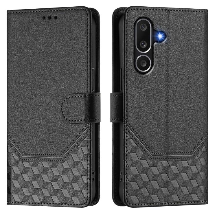 Funda de cuero con relieve de panal RFID para Samsung Galaxy M56 5G (negra)