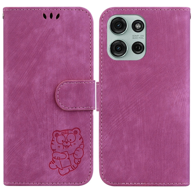 Funda de Cuero con Relieve de Tigre para Motorola Moto G75 5G (Rosa Rojo)